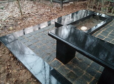 Первым делом на месте захоронения был проведен демонтаж всего, что там было. Сооружен бетонный ленточный фундамент. Уложена гранитная подложка под ограду, подставка под памятник, цветник и лавочка, также все свободное пространство могилы закрыто гранитной брусчаткой. Кстати, изначально лавочка была установлена иначе, чем обсуждалось и ее пришлось переустановить, хотя на могиле именно первый вариант установки был более привлекателен.